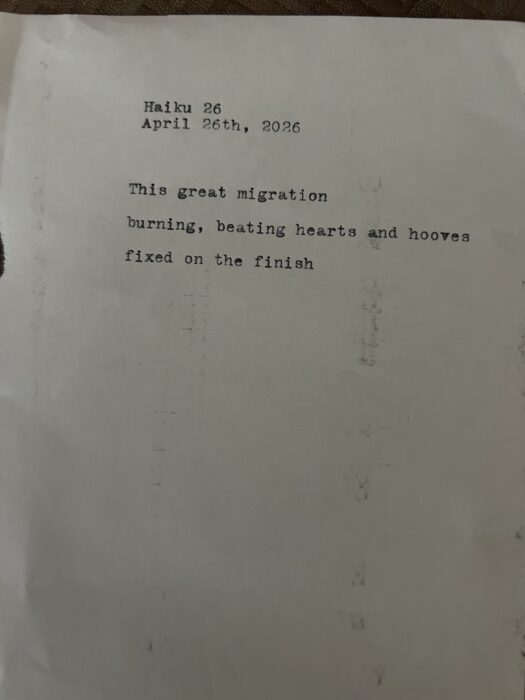 When I think about humans running and how to describe it in poetry, I can’t help but picture thousands of thunderous beasts, moving across the landscape together, toward a common goal. How magnificent!