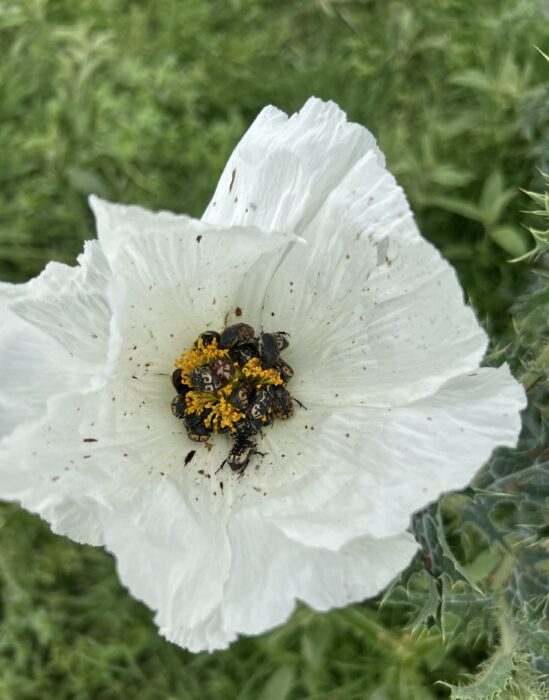 Imagine my delight to learn that they’re called Kern’s Flower Scarab — could there be a prettier name? — and that they were indeed doing the good work of pollinating. Life really looks after itself sometimes.